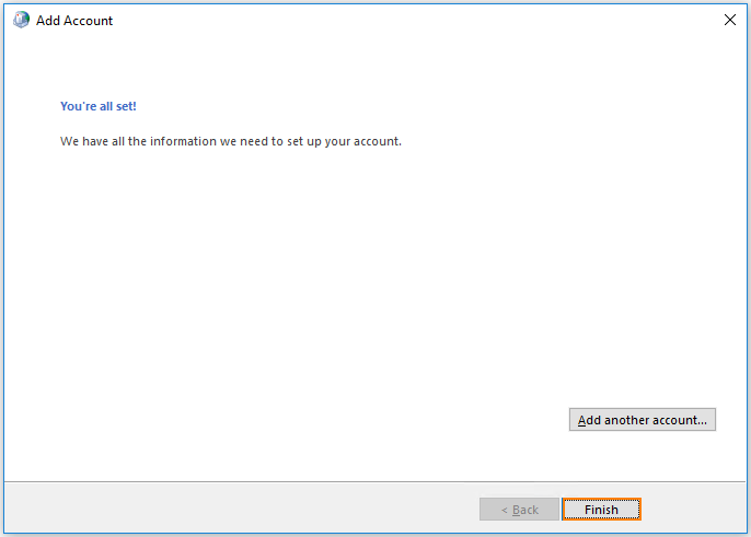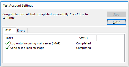 - Attendere il completamento della procedura di Test delle impostazioni dell’account e fare clic su Chiudi.